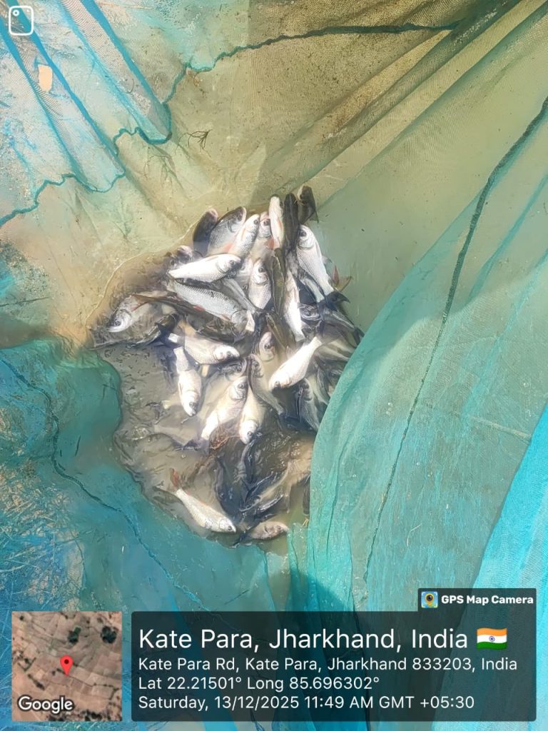 In March, ahead of the monsoon, he stocked around 20 kg of fingerlings. Seven months later, he harvested his first lot—15 kg of table fish, which he sold at ₹240 per kg, earning ₹3,600. While this was just the beginning of his pisciculture returns, the real value lies in the layered system he has created around the pond.